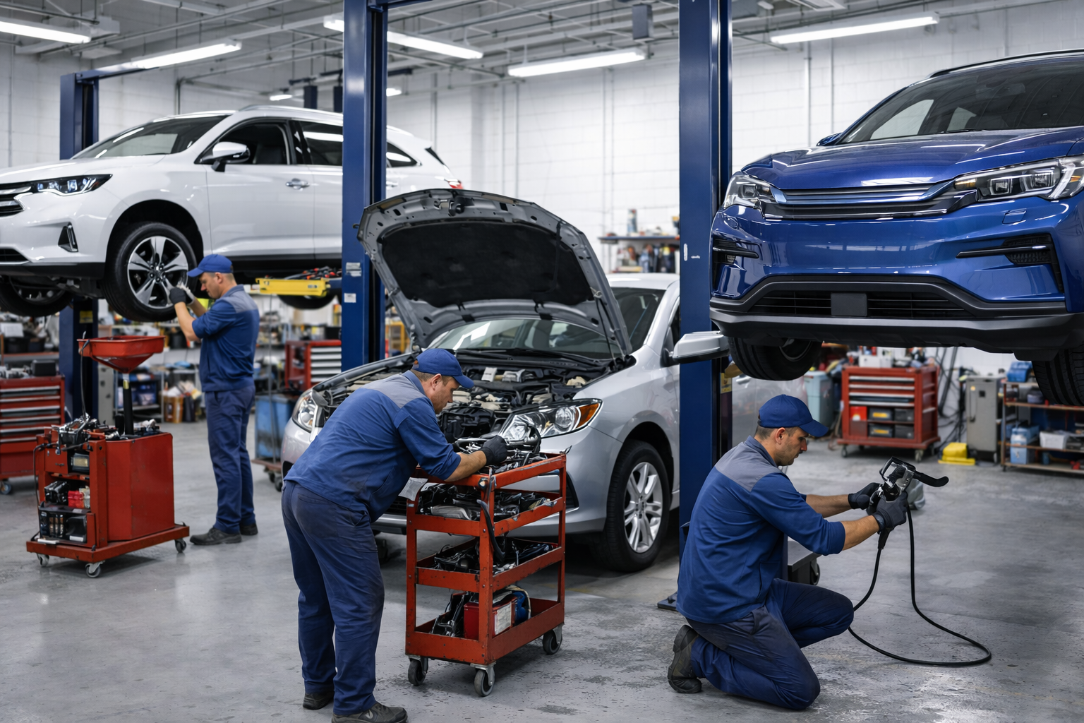 مدة الصيانة تعتمد على نوع الخدمة المطلوبة. الخدمات البسيطة مثل تغيير الزيوت قد تستغرق أقل من ساعة، بينما الفحص الشامل أو الإصلاحات الأكبر قد تستغرق وقتًا أطول.